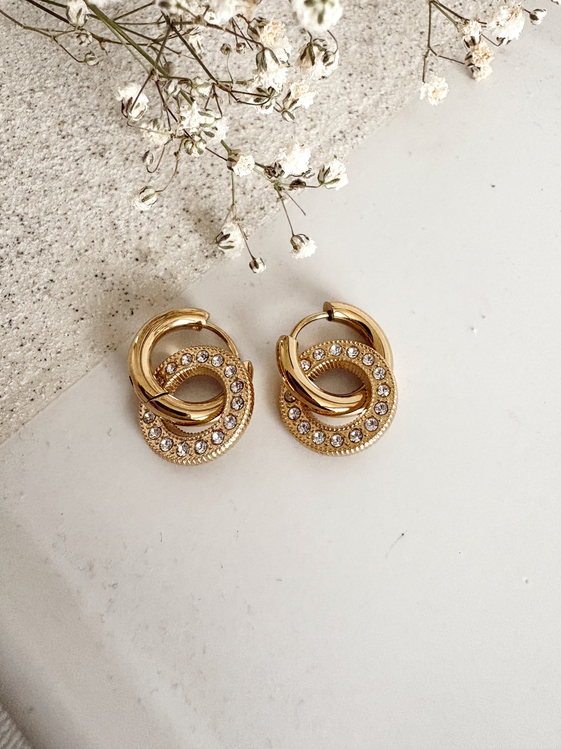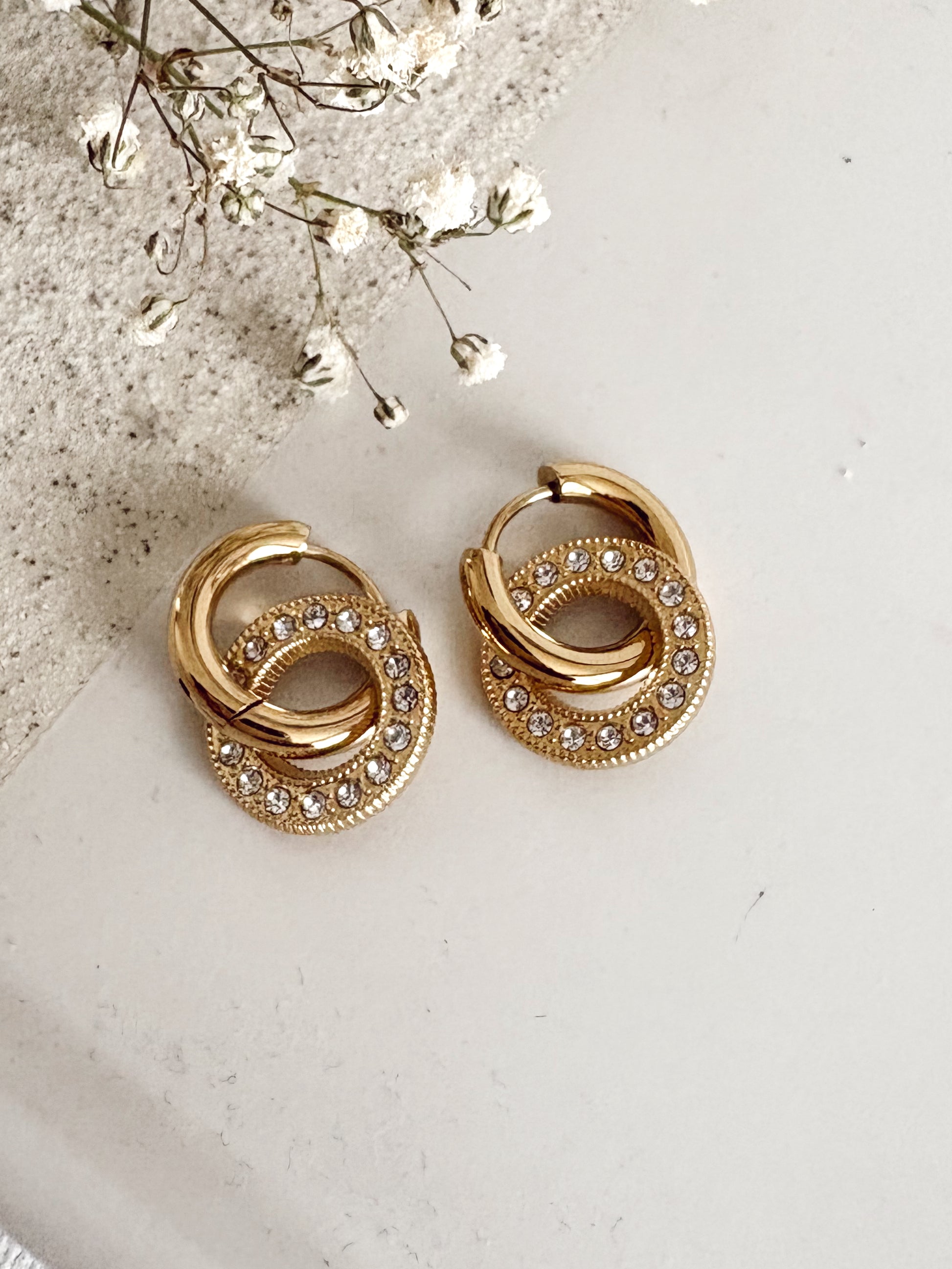 Zirconia Double Hoop Stainless Steel Earrings